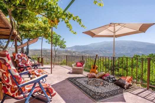 A beautiful cortijo-style country house on the outskirts of Albuรฑuelas, with existing rental license and panoramic views across the Lecrin Valley. All you could wish for with a private pool, 4 beds, 2 baths, low maintenance exterior and land to cultivate. Broadband Internet by satellite dish (all popular providers have reception there).