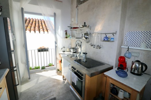 This pretty apartment benefits from lots of natural light, flowing through from the large balcony doors in the living room, all the way into the kitchen at the rear, which also has patio doors to a Juliet balcony. There is a bathroom on the mezzanine level near the stair and the kitchen is equipped with an oven, hob and large refrigerator.